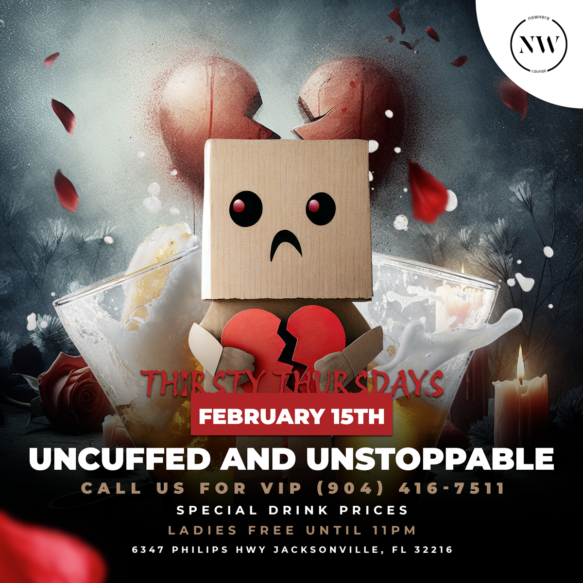 Join us Friday February 15, 2024 for our first ever Thirsty Thursday event at The Nowhere Lounge